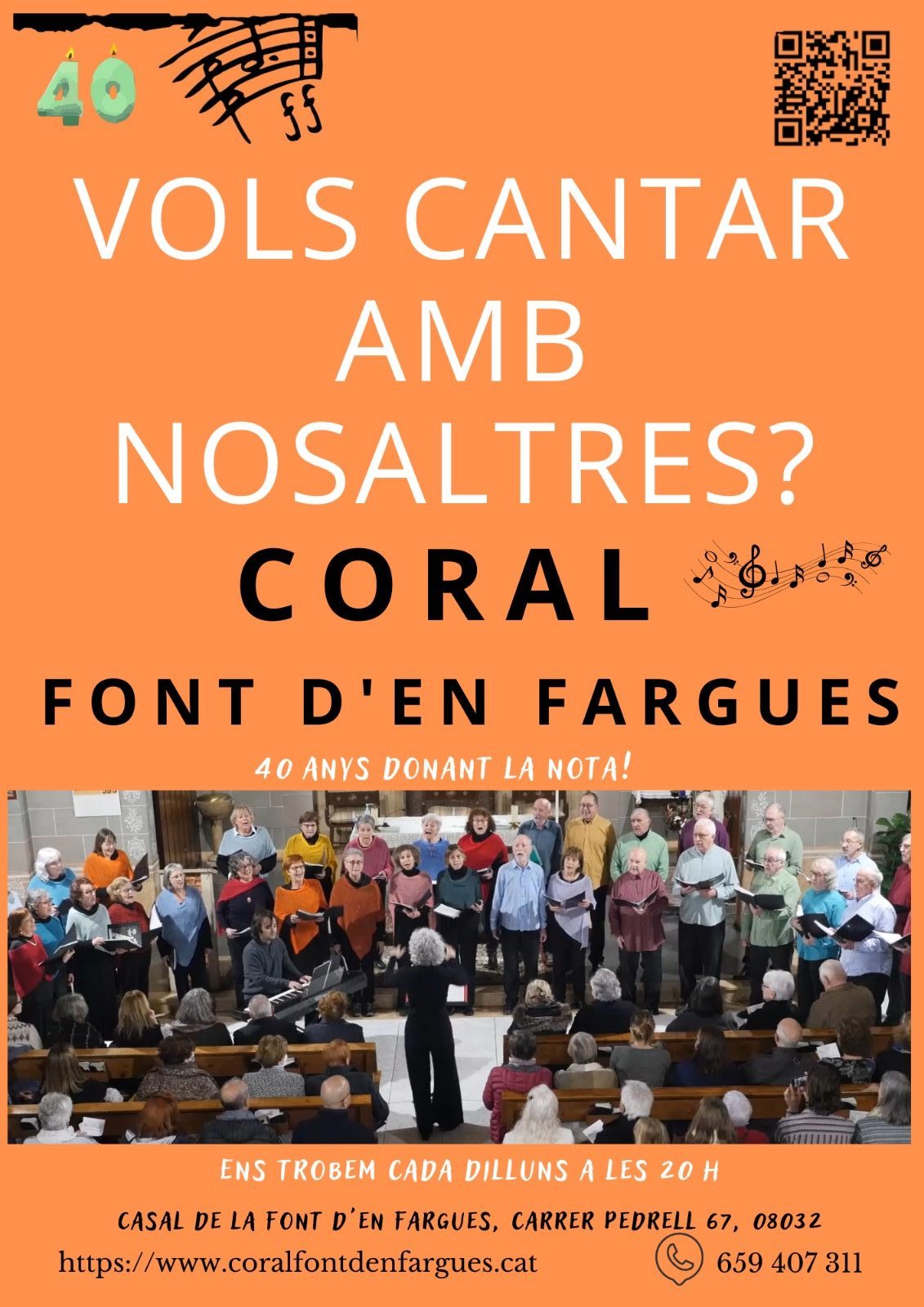 S’ha iniciat una nova campanya per la captació de nous cantaires. Per donar-nos a conèixer hem editat un nou cartell on mitjans un codi QR es pot accedir al formulari d’inscripció.